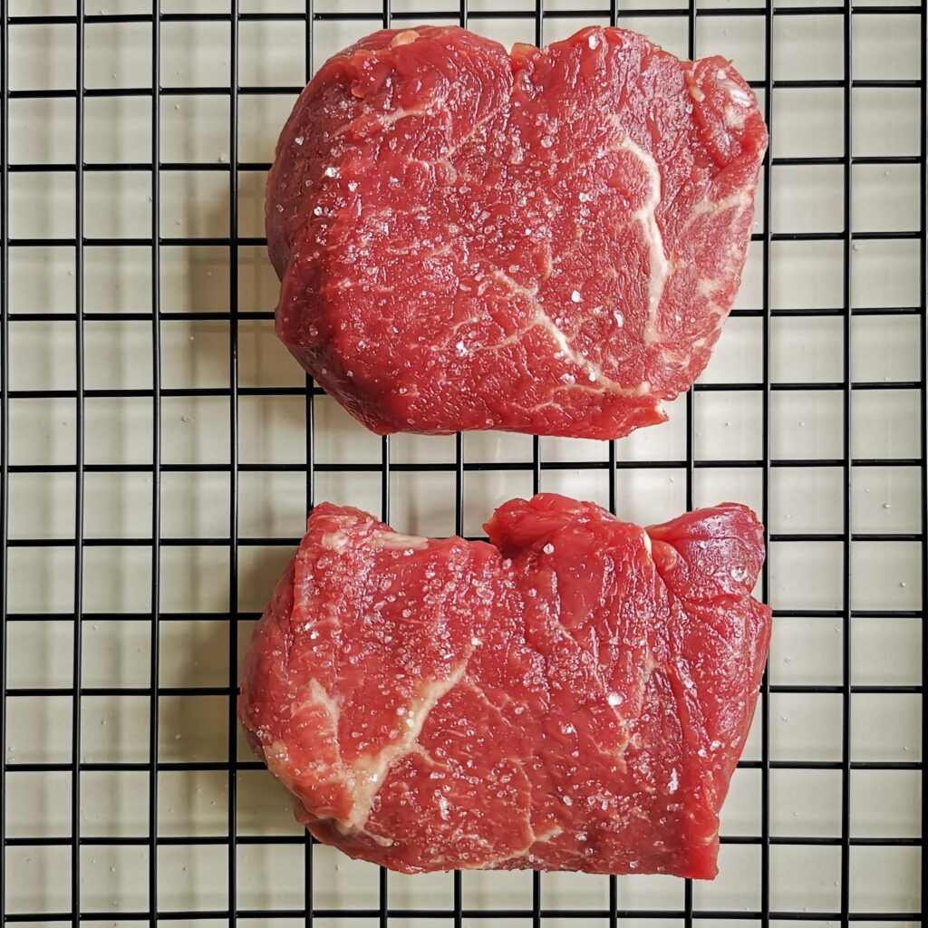 Техниката на суха саламура (dry brine) работи отлично за телешки стекове, различни кътове.