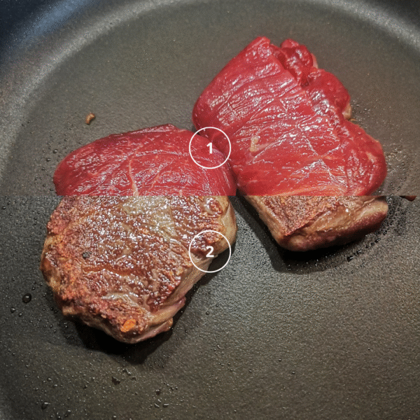 Първо ги запечатайте в тиган – около 4 минути на страна, за да се образува силна коричка. Добавете допълнително време за запечатване на ръбчетата. След това ги прехвърлете във фурна, предварително загрята на 180°C, за още 4-5 минути, за да се довърши готвенето в дълбочина.