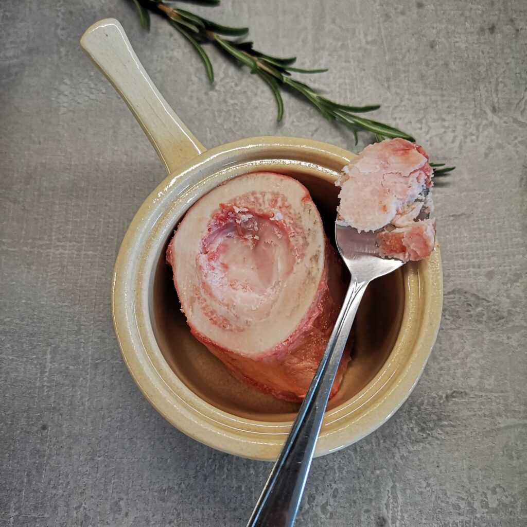 Един от добрите начини да извлечете максимума от костния мозък е да го издълбаете от тръбните кости и да го използвате директно за готвене. Това е лично моя интерпретация – не съм виждала някой да го прави, но работи отлично и го прави една от най-добри мазнини за готвене. Получавате 2 в 1: телешка мазнина с наситен вкус и естествен източник на колаген, който се разтапя и обогатява ястието. Ако животното е пасищно отглеждано – мастният профил е още по-добър.